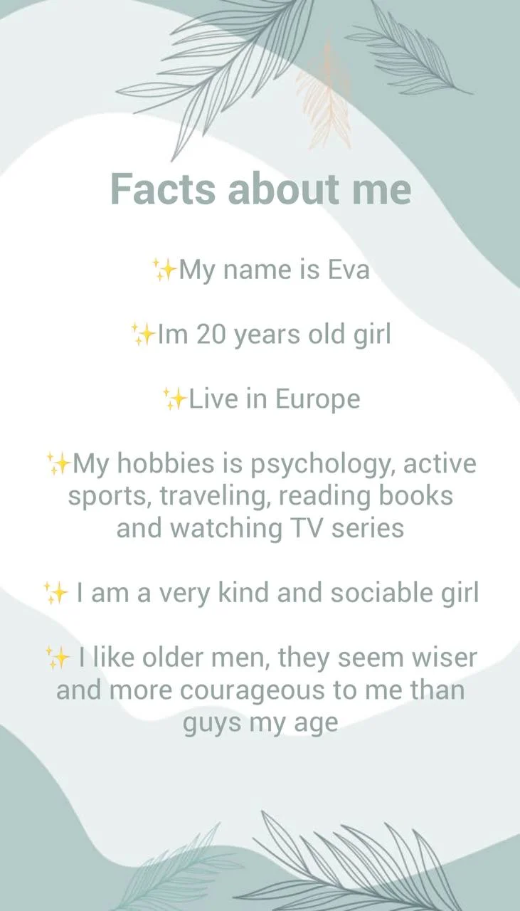 Hi cats ! I'm glad to see you on my page, I'm new here and I'll be glad to meet you all and make new friends. My name is Eva im 20 and I came here to try something new and reveal my sexuality ;) i also like to meet new people in my life